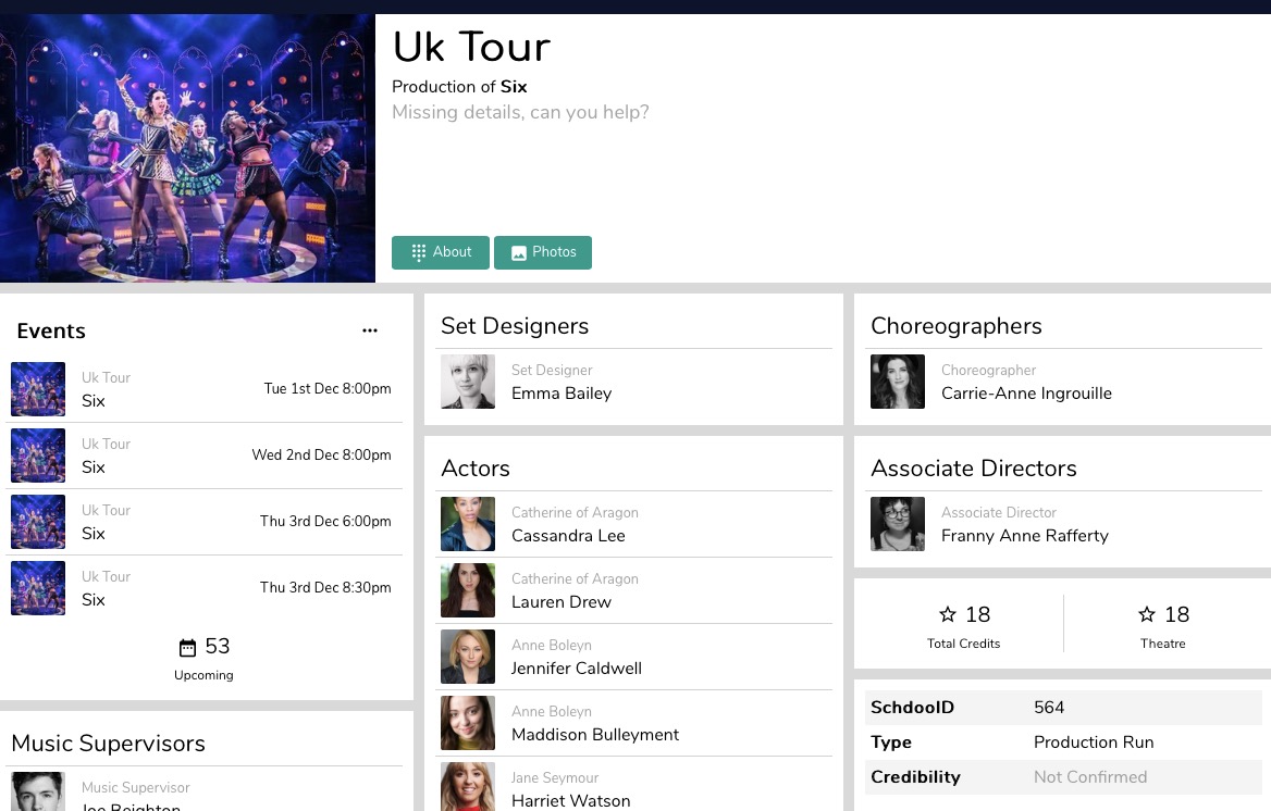 The name schdoo took on a new life. Combining passion and code, this startup was intended pre-pandemic to be similar to an IMDB of theatre and live events. There's still a lack of a great one-stop place to see all live shows and details on performers in one place. With integrated API ticket sales and venue / talent management. Written in a bespoke PHP framework hosted on AWS’s EC2, RDS, S3 & SES. As live shows came to a stop during the pandemic it never found its place. One day it may see life again..